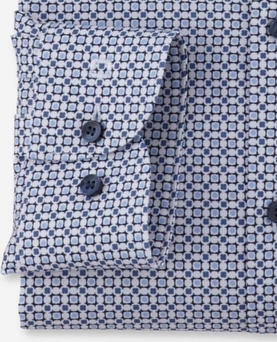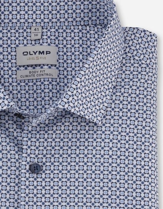 Modern, körperbetont und mit besonderem Komfort: Dieses OLYMP Level Five Body fit Hemd in edlem Blau mit grafischem Muster überzeugt durch stilvolle Eleganz und funktionale Eigenschaften. Perfekt für Männer mit schlanker Silhouette, die einen smarten Look mit einem angenehmen Tragegefühl verbinden möchten.